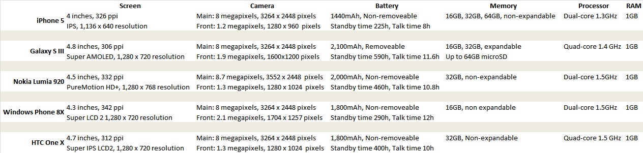 Loads of numbers, a salespersons dream! All of the numbers are quite simliar too, not massive differences really, but these phones are all top spec and use the best(ish) of what's available in their own little worlds. There's good and bad points about them all, but generally they work well and will keep you happy during that 24 month contract.